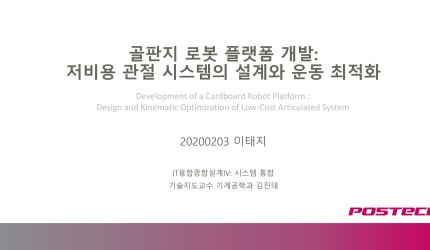 골판지 로봇 플랫폼 개발: 저비용 관절 시스템의 설계와 운동 최적화 (IT융합 종합설계 IV - '20학번 이태지)