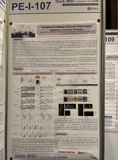 비만, 뇌졸중, 동맥경화증 등 심혈관 질환과 대사질환을 연구하고 있으며, 혈관 및 대사 질환 동물 모델을 유도한 후 면역형광염색, 클리어링 기법 등을 통해 생리병리학적 변화를 관찰하고 있음. 또한, 사람의 혈전, 태반에서 대사성 질환 유무에 따른 차이를 분석함.